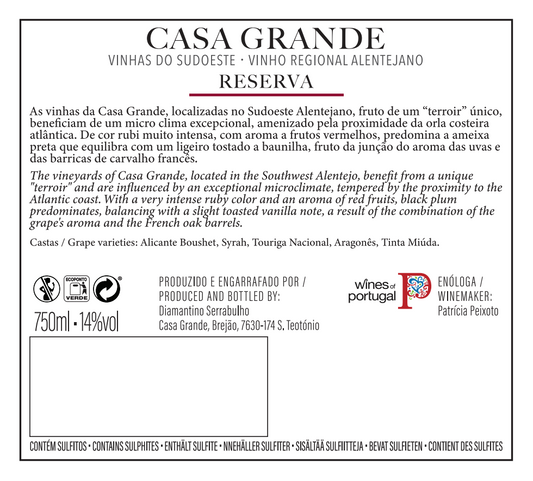 As vinhas da Casa Grande, localizadas no Sudoeste Alentejano, fruto de um "terroir" único, beneficiam de um micro clima excecional, amenizado pela proximidade da orla costeira.